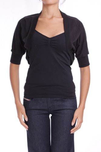 Anta Q'ulqi - Boléro / Cache-épaule en jersey 100% coton Tanguis bio pour femme - Couleur Noir - Taille XS