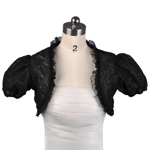 Manches courtes taffetas boléro de mariage avec en dentelle avec V dos 36.61 Noir boléro de mariée à manches courtes en dentelle avec bord ruché