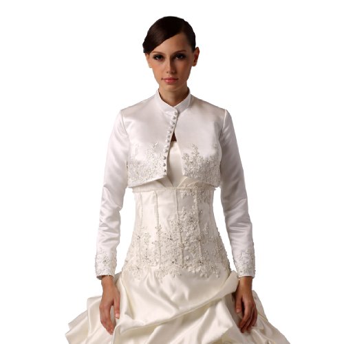 Artwedding bolero de mariee manches longues en satin avec appliques, Ivoire, 38
