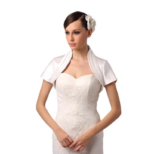 Topwedding Bolero de mariage col batteau manches courtes avec bord festonne,Ivoire. Artwedding bolero de mariee manches longues en satin avec appliques. EUR 34,69.