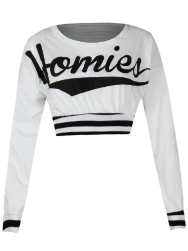 Karma - T-Shirt Boléro Manches Longues Imprimé Homies Université Femme - Blanc - 36-38