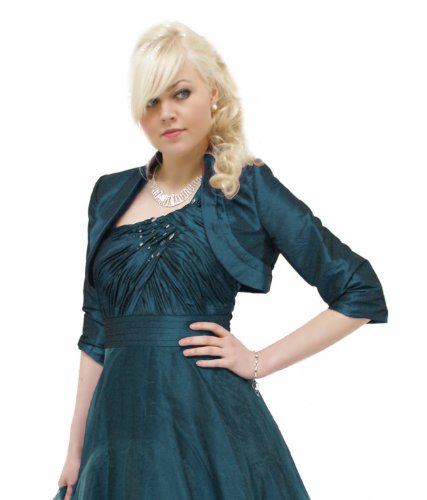 Exclusif bolero en taffetas avec double col pétrole bleu 34 (3100) Imméd La veste courte boléro est un moment fort particulier.Manches 3/4, à la mode en pleine